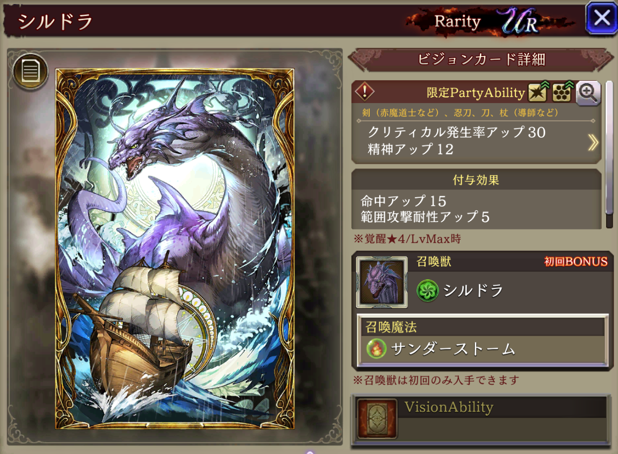 ![]() | ヴィストラール | 18 | SSR | 50 | 光 | 短剣 |