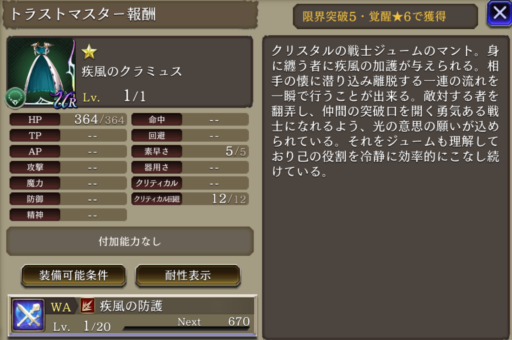 メインジョブ クリスタルの戦士(風)
