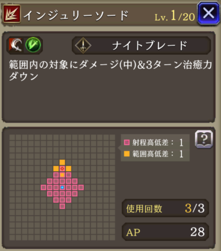 味方の闇属性ユニットのHP上限+10%・闇属性アビリティ攻撃+15、自身の消費AP-15%、範囲攻撃耐性+5
