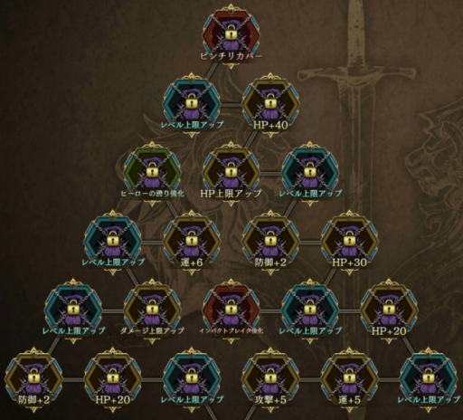 ヒーローの誇り ↓ ヒーローの宿命(EX) | HP上限+12%、防御+12 ↓ HP上限+12%、防御+12、ヘイト+5 |