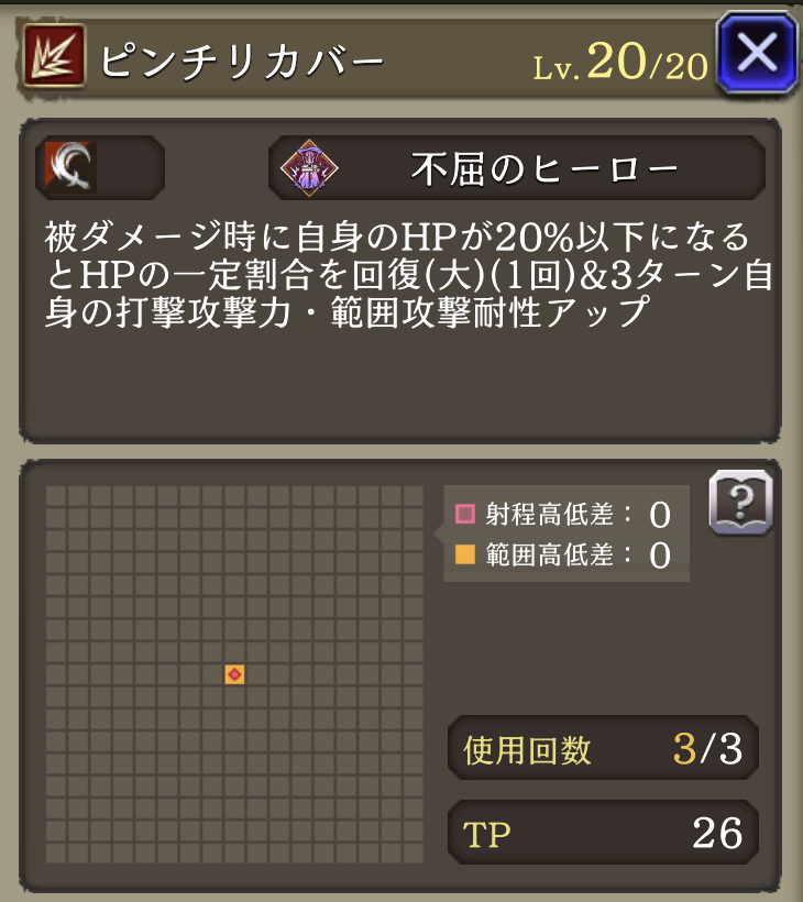 リベンジアサルト ![]() | 不屈のヒーロー 被ダメージ時に30%の確率で反撃&自身のHPが低いほどダメージアップ |