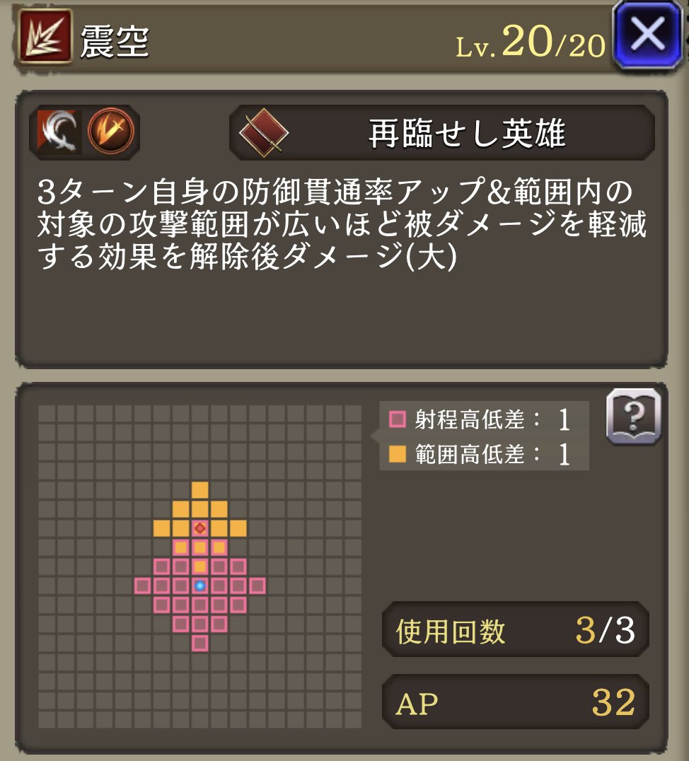 挺身の守護 ![]() | アクスナイト 被ダメージ時に30%の確率で1ターン自身を中心とした範囲内の味方の範囲耐性+40 |