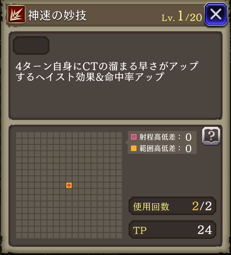 ![]() | 4ターン自身にヘイスト 命中+30 | 482 |