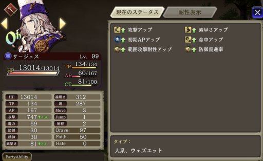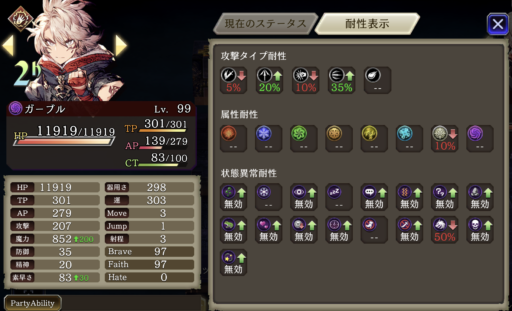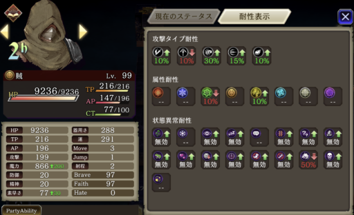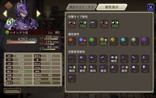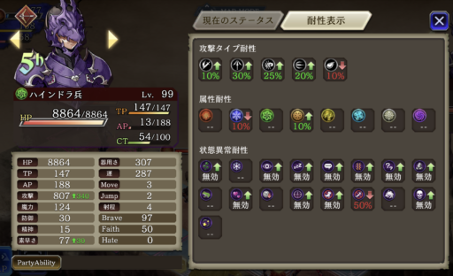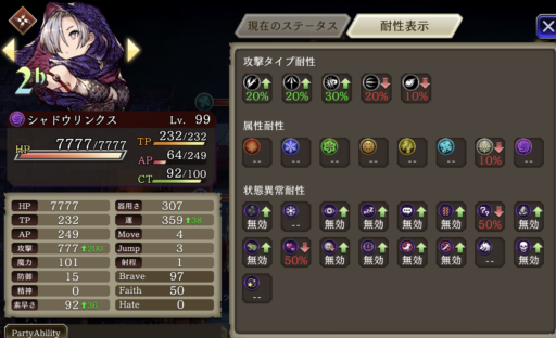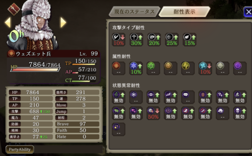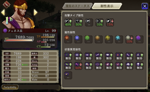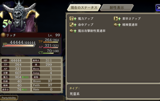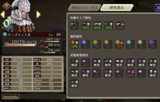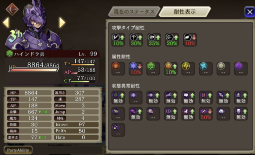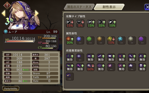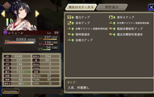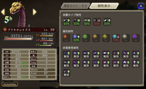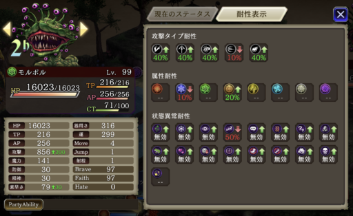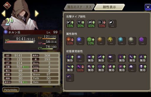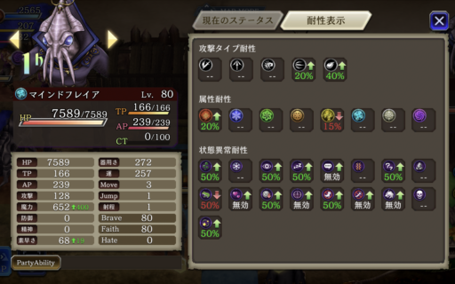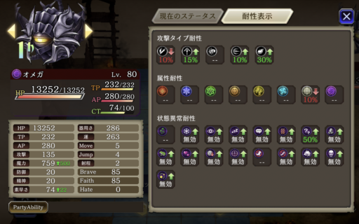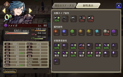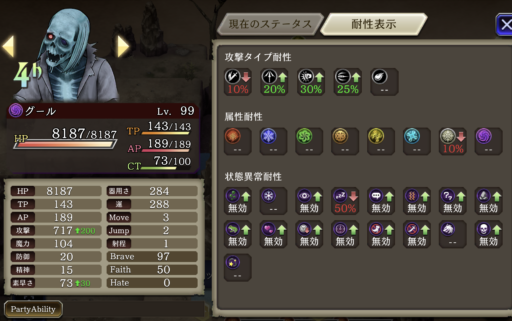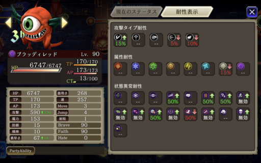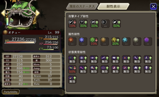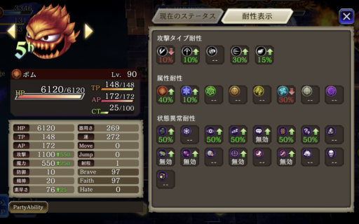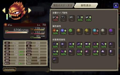 ![]() 毒・スロウ有効 1ターン目に耐性アップやリレイズを使ってくる |