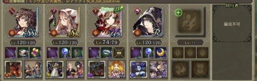 | 0:00 編成 0:10 初期位置 0:35 シムールが睡眠範囲攻撃 0:52 「魔淵の沼」でCTダウン攻撃 0:59 からの「慧眼の刃」で連続攻撃へ 2:18 3体同時撃破 2:31 リンクスのハートを盗む 2:44 EXマルグリットのバーサク攻撃は付与確率がとても高い 4:00 態勢を整えながらフェンリルを適当に倒す 6:14 リッチはスロウが効く。7チェインのために弱点の斬撃で攻撃しないようにする 7:24 時間を盗んでチェインを繋ぐ 7:42 バーサクが入るとダメージがアップしてしまうので注意 7:56 ミーアの斬撃はダメージが少ないのでおすすめ 8:47 7エレメントチェイン達成 |