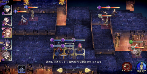 ![]() 3手に分かれて、 ①物理タンクのタイタスは左上に向かい囮に ②アタッカーのラメイガとリンクスは左下から敵を殲滅させる。 ③リレルリラは右側の魔法系キャラの対応へ |