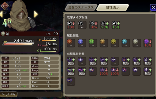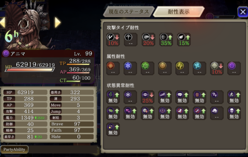![]() このステージも魔法タンクリレルリラと物理タンクタイタスが活躍! 全体を通してリンクスの暗闇やストップ付与の効果が強力なため必須 |