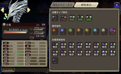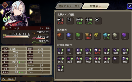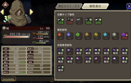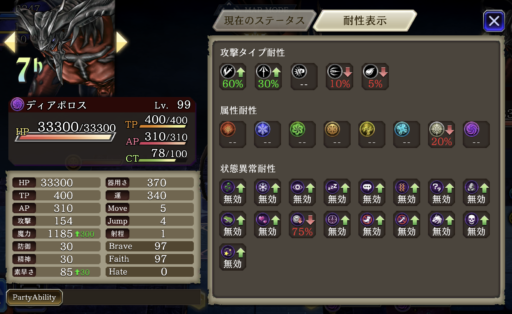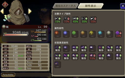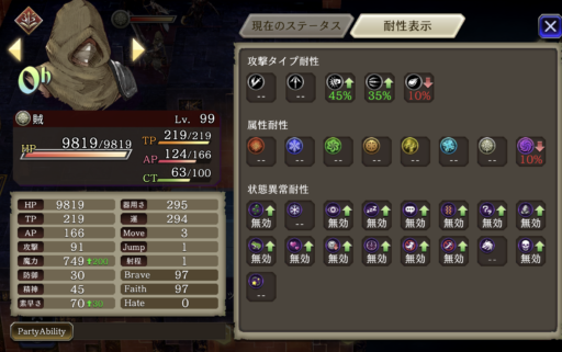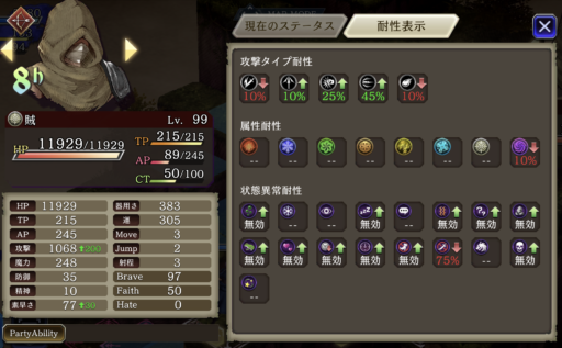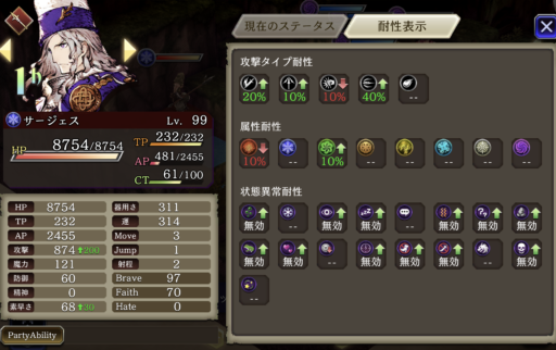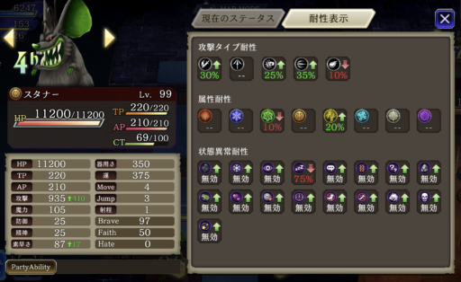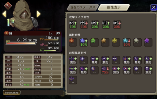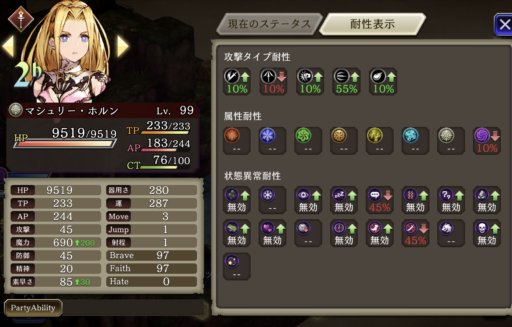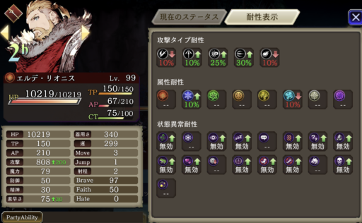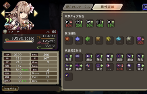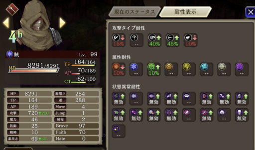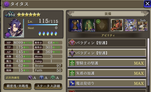 タイタスのステータス⇩![]() ![]() 「セイントフォートレス」のバフで刺突耐性が更に+20できる(80に) |