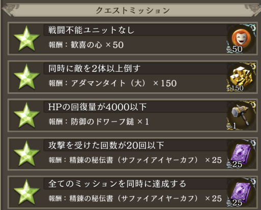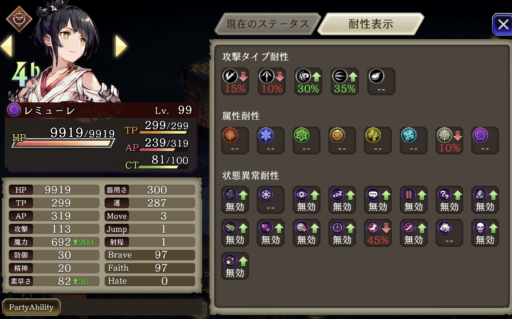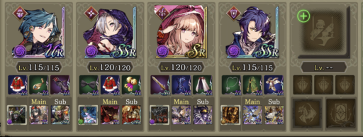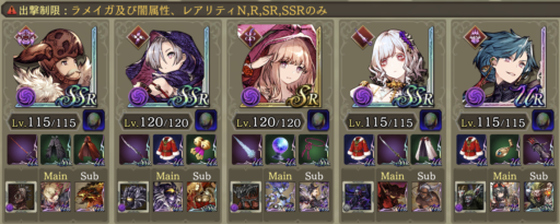 ![]() 序盤の魔法や、増援のスナイパーの攻撃が強烈なため物理タンク「タイタス」と魔法タンク「リレルリラ」を上手く使い分けてクリア。 ラメイガ、リンクスは回避仕様です |