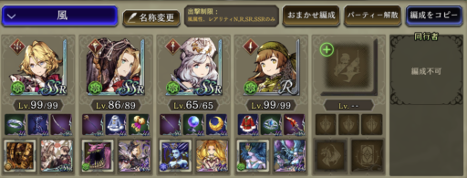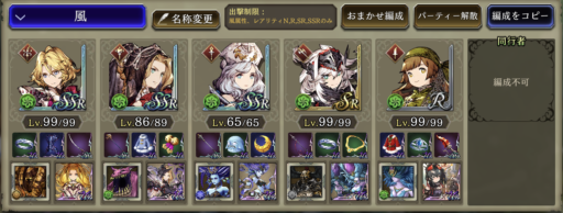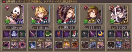 ![]() ガーガスの火力特化&信銘石未使用パーティです VCは全て完凸済。ソシアのところは誰でも(いなくても)OK ロレイラが育っていればミーアかソシアとチェンジします。 チョコプリン一定ダメージで増援(トンベリA)、またはムーアとグリーンスライム撃破で増援トンベリ(A・B・C)、が来ます。3体同時撃破のためにトンベリAを先に出し、ターンを稼いでトンベリ3体をまとまりやすくします。 |