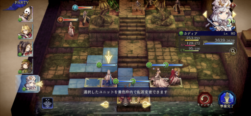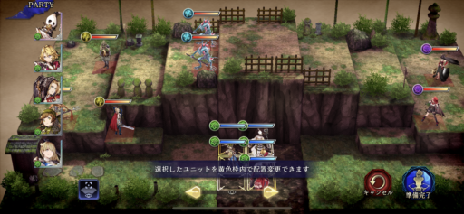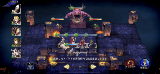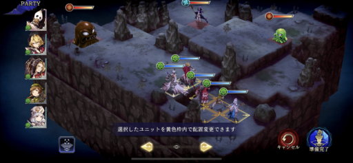 初期位置![]() 左側の敵は厄介なので右からダリオ、ガーガスを中心に攻める布陣 |