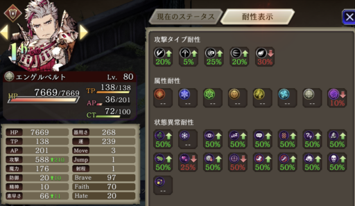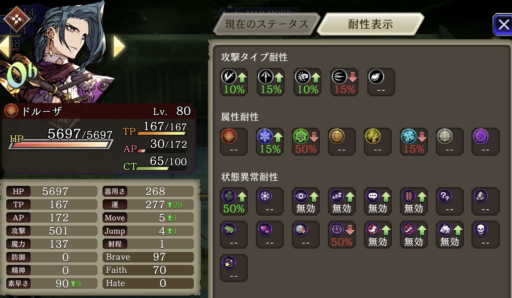 | (+5 Lv50) | 魔法攻撃+20 リアクション阻止率30 ※ガーガス限定 風属性アビリティ攻撃+15 範囲耐性+10、素早さ+10% アビリティ発動時間短縮+300 |