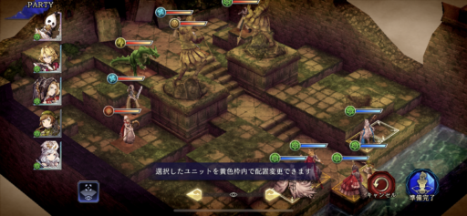 初期位置![]() 左側の敵は厄介なので右からダリオ、ガーガスを中心に攻める布陣 |