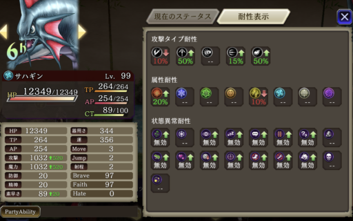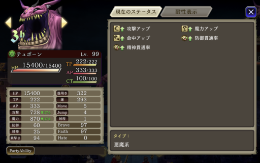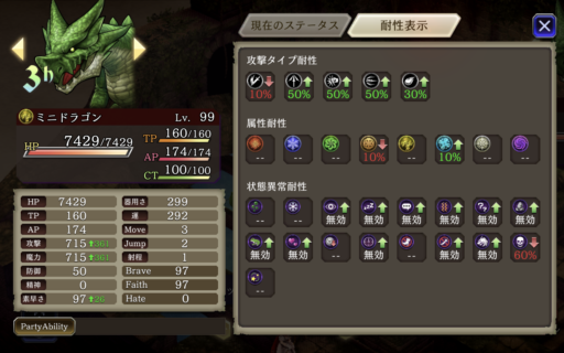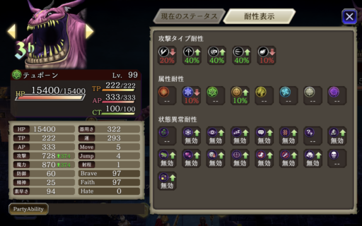 ※与ダメージが少ない方へ ⇩⇩ ![]() 召喚魔法「テトラシルフィード」「テュポーン」「アーリマン」などを使用すると敵全体の風耐性が大幅に下がって大ダメージを与えられるようになります |