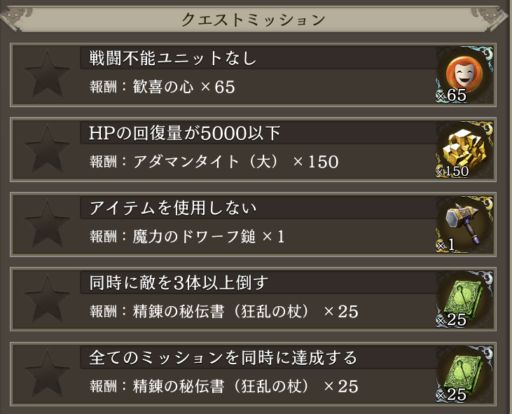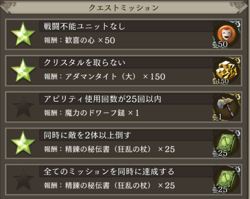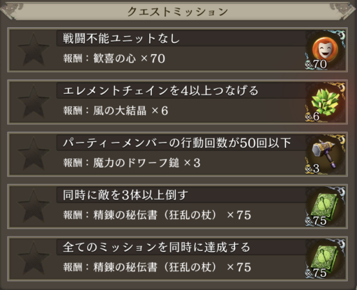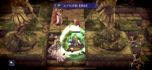 ![]() 左攻めでリレルリラとフィーナとの対戦を一時回避 「チェイン4」は「時間を盗む」を駆使し、斬チェインで達成 「2体同時撃破」はガーガスの範囲攻撃で達成 ①ダリオがヘイトを取りつつタンク役 ②ヘレナ白魔で適宜回復 ③ガーガス&シーレルで敵を殲滅 |