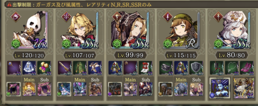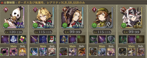 ![]() ガーガスの火力特化&信銘石未使用パーティです VCは全て完凸済。ソシアのところは誰でも(いなくても)OK ロレイラが育っていればミーアかソシアとチェンジします。 チョコプリン一定ダメージで増援(トンベリA)、またはムーアとグリーンスライム撃破で増援トンベリ(A・B・C)、が来ます。3体同時撃破のためにトンベリAを先に出し、ターンを稼いでトンベリ3体をまとまりやすくします。 |