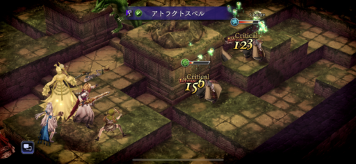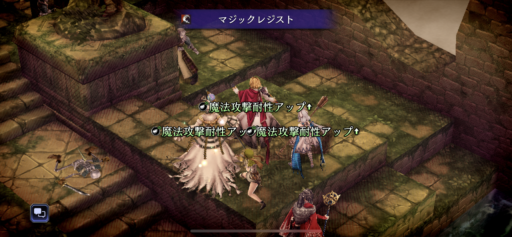 ![]() ▲ダリオとミーアは「アトラクトスペル」でヘイトをとりつつ攻撃 ※右側の敵は魔法耐性が高く斬撃に弱いため |