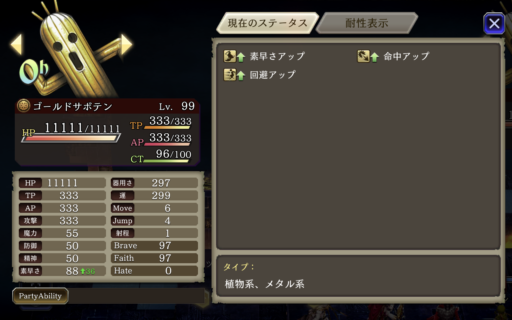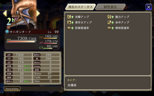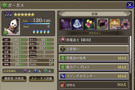 | (+5 Lv50) | 魔法攻撃+20 ※ガーガス限定 風属性アビリティ攻撃+15 範囲耐性+10 アビリティ発動時間短縮+300 |
