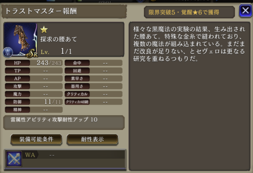 | ⇩MA3強化⇩ 魔力+30%、攻撃アビリティ発動時間-50%、全攻撃タイプ耐性+25 |