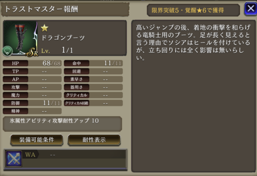 竜騎士の心得 | HP上限+15%、治癒力+20 |