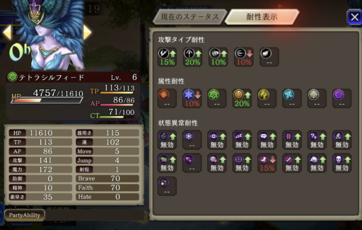 上のパーティは闇の斬撃アビリティで『チェイン』と『エレメントチェイン』を同時に狙う編成です。チェインが切れないように遅延役のジザの『時間を盗む』を使います。(ヴィネラも使えます)