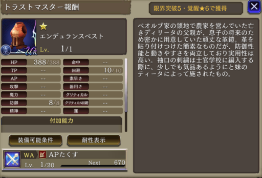 獲得APアップ | 獲得AP+50% | 見習い戦士(ディリータ) |