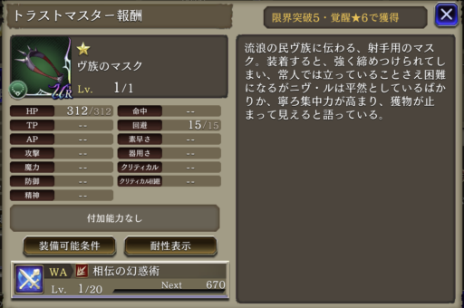 | JobLv19 スナイパーの極意強化 | 防御貫通+40追加 |