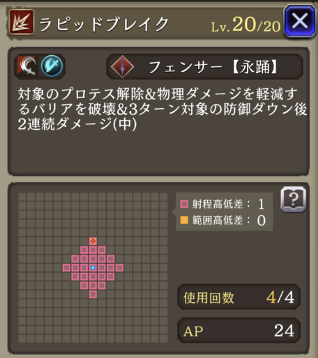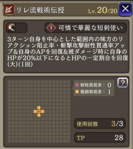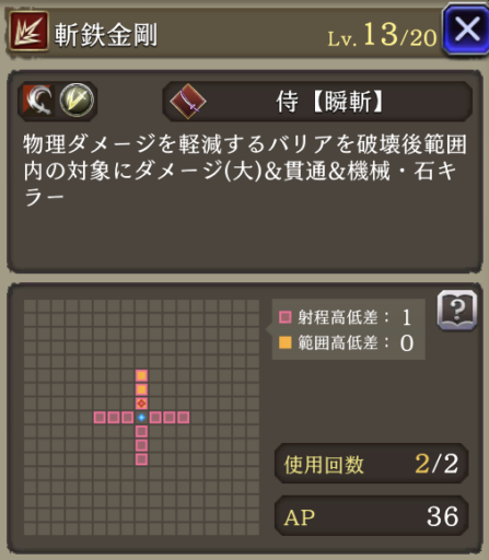| ガンナー (ヘイスト・AP自動回復のみ) | サーダリー (AP自動回復・追撃のみ) |