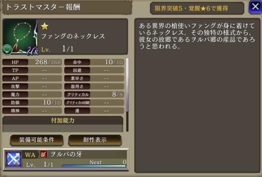![]() | 物理バリア7500 攻撃+40% 素早さ+25% 単体耐性+25 | 1072 | |