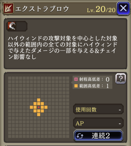 ![]() | 【EXラストアビ】【夢幻】 2体選択攻撃 刺突耐性25ダウン 命中+30 敵を戦闘不能にすると HP割合回復 | 1076 |