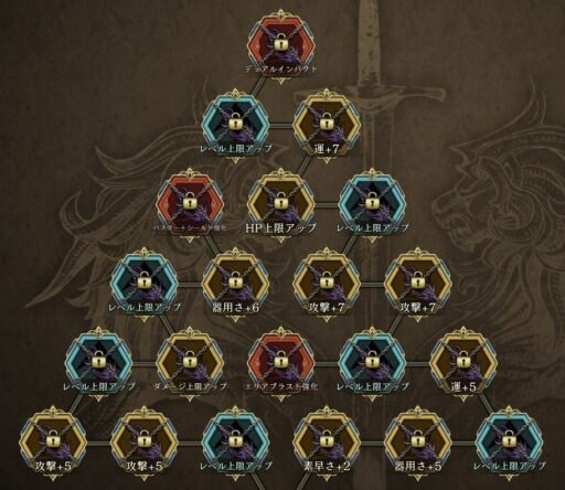 密偵の双剣術 | 回避+12、獲得AP+40% |