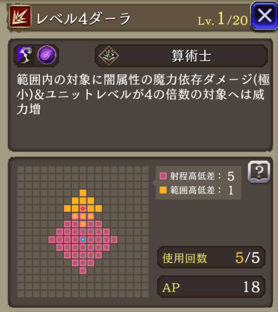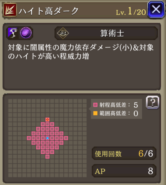 | 射程◎ | 算術が「最大射程6高低差5」な上、メインアビも射程5が揃う |