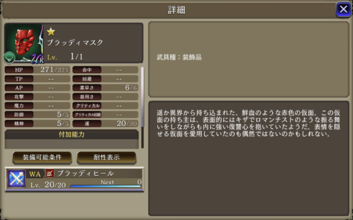 撃破ヒール | 毒・沈黙 係数×2、 敵を戦闘不能にするとHP回復 |