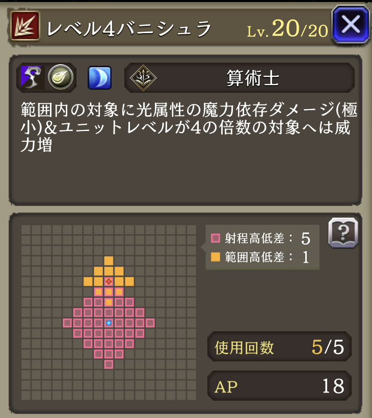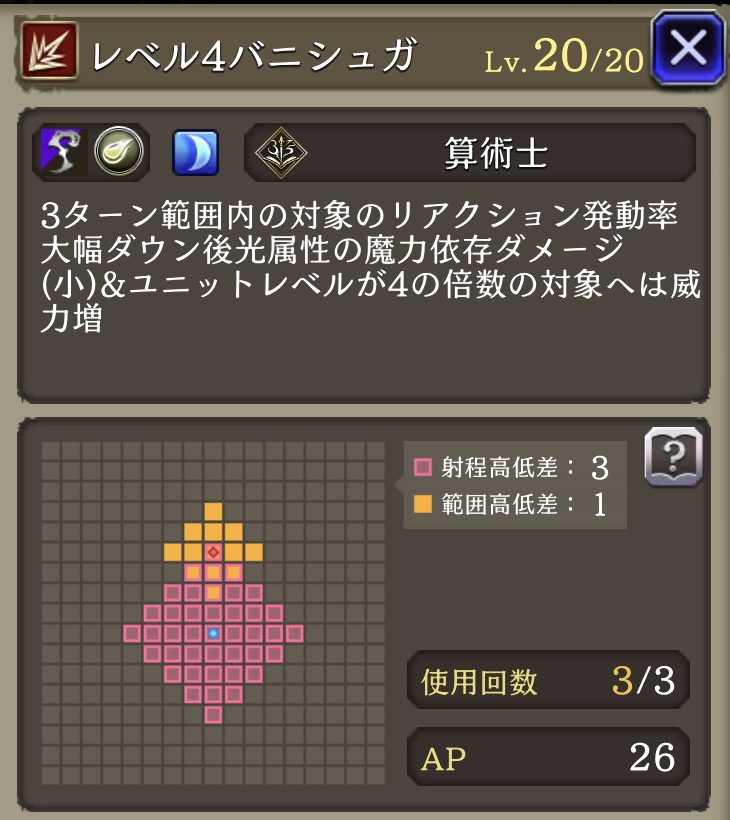 レベル4をレベル3に | 自身が使用する「レベル4」が対象となるアビリティをバトル中のみ「レベル3」に置き換える | 算術士 |