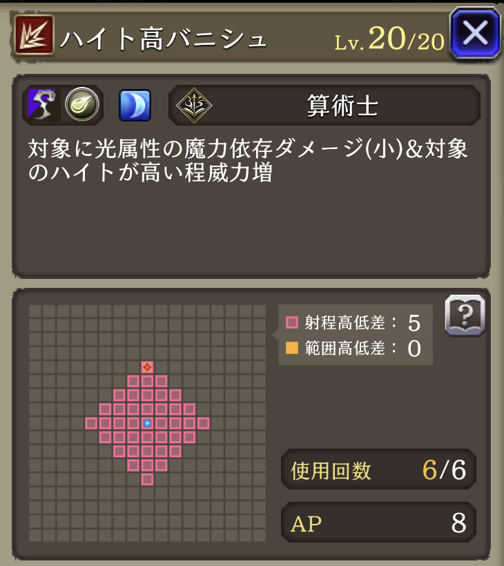 ハイト3をハイト2に | 自身が使用する「ハイト3」が対象となるアビリティをバトル中のみ「ハイト2」に置き換える | 算術士 |