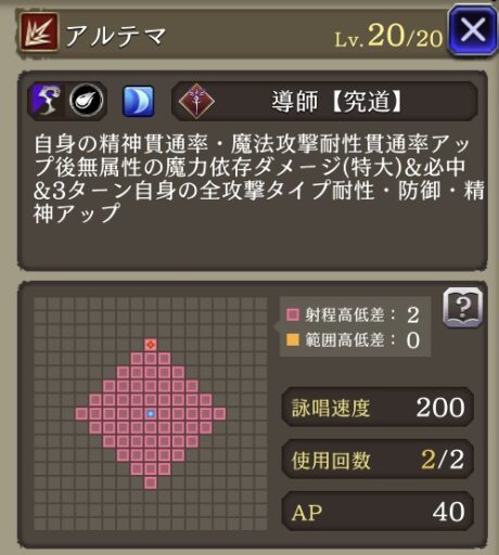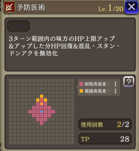| JobLv19 活癒の法強化 | 射程+1、射程高低差+1 |