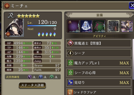 【FFBE幻影戦争】ミーチェのMAXステータス/アビリティ詳細