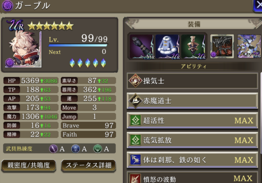 ※全てアビリティLV.MAX、Brave/Faith値MAXの値