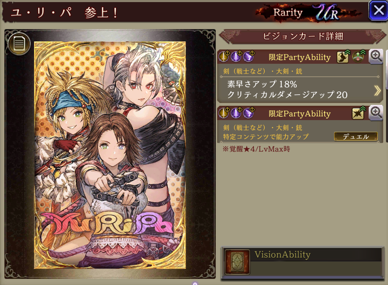 【FFBE幻影戦争】ユ・リ・パ参上! の凸別ステータス/アビリティ