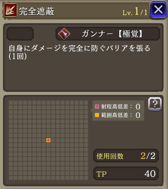 自身にダメージを完全に防ぐバリアを張る(1回)