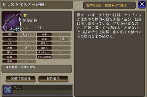 器用さ+15%、クリティカルダメージ+15%、射程+1
