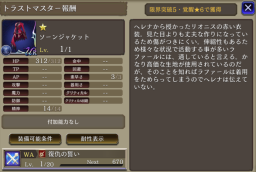 ![]() | 魔法バリア(HP7500) 斬撃貫通率+40 | 6 |