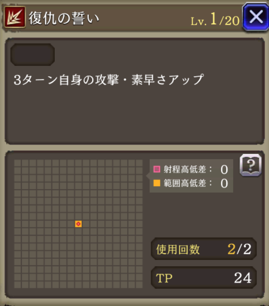 ![]() 3ターン自身の攻撃+40%、素早さ+25% | 376 |