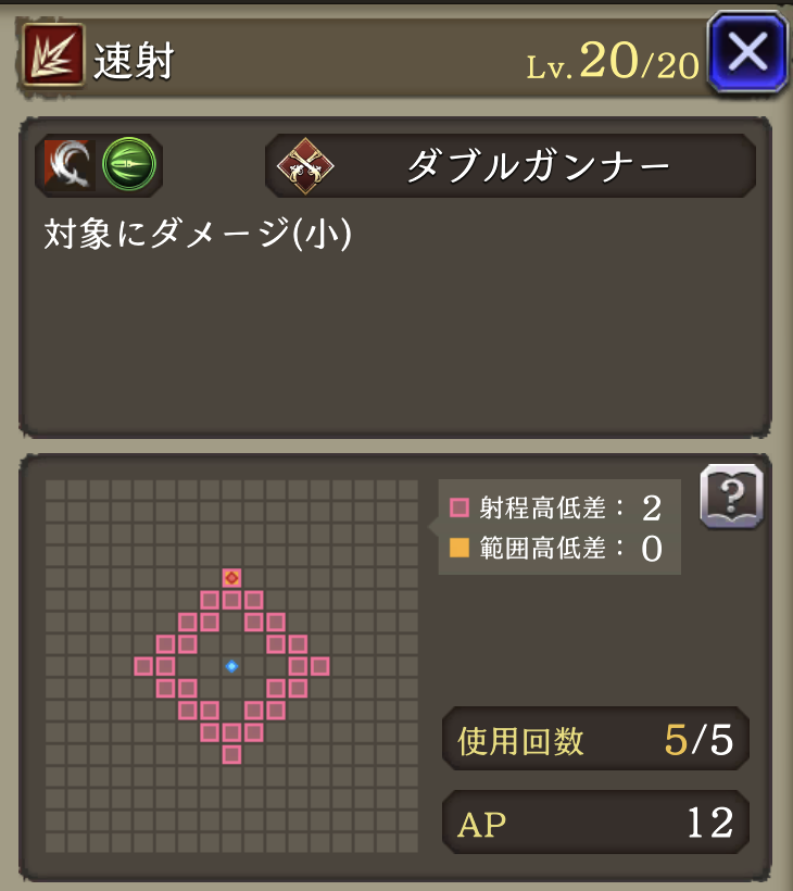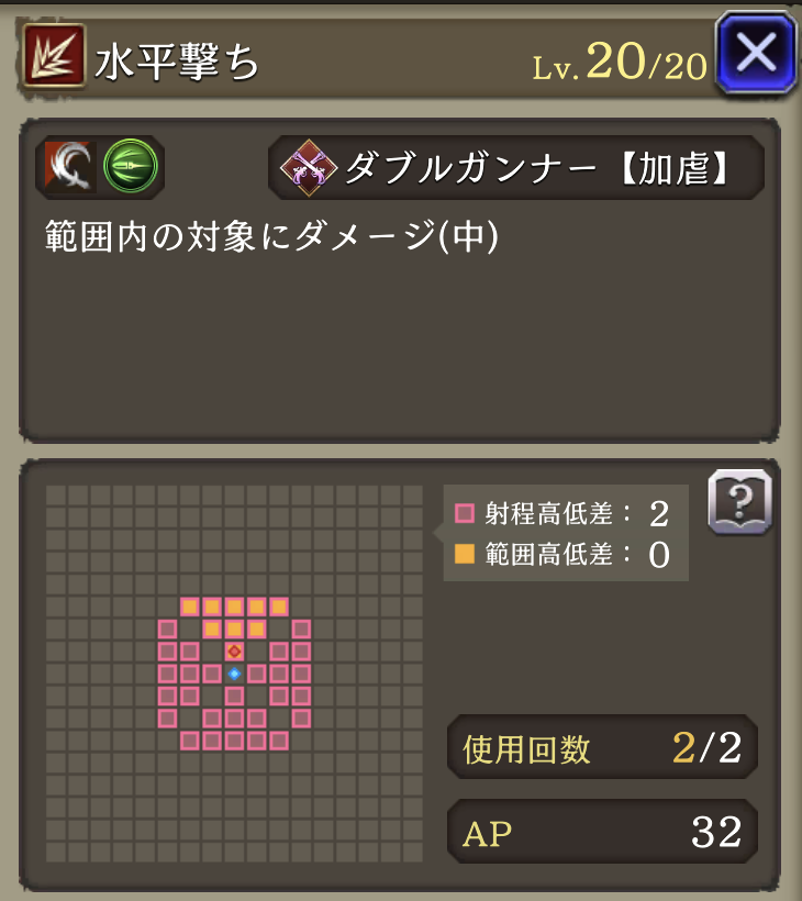 予測射撃 ![]() | ダブルガンナー 物理攻撃による被ダメージ時に30%の確率で先制反撃 |