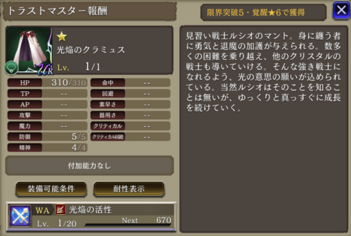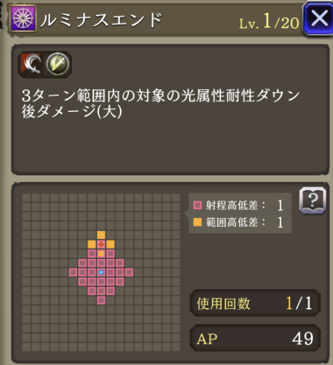 AP消費率20ダウン 範囲攻撃耐性+10 新星煌閃 強化 斬撃攻撃耐性貫通率+40、AP20消費効果 追加 | 物理系 アタッカー |