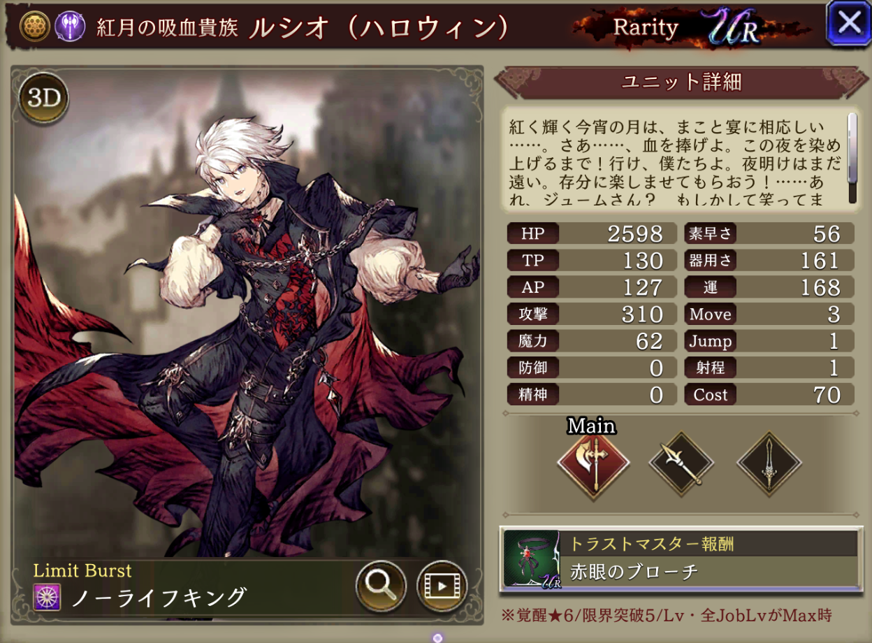 | ⇩MA3強化⇩ 味方の土属性ユニットのHP上限+10%・土属性アビリティ攻撃+15 自身の斬撃貫通+15、リアクション阻止率+40・運+20%・物理ダメージ+10% |