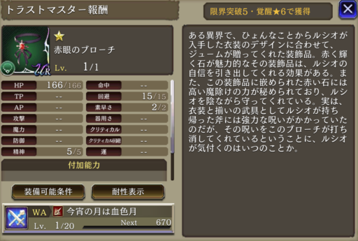 必殺の剣技 | クリティカル率+15、クリティカルダメージ+20 |