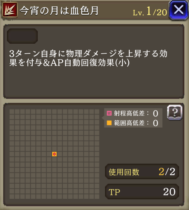 ![]() 3ターン自身の物理ダメージ上昇+15%&AP自動回復5% | 459 |
