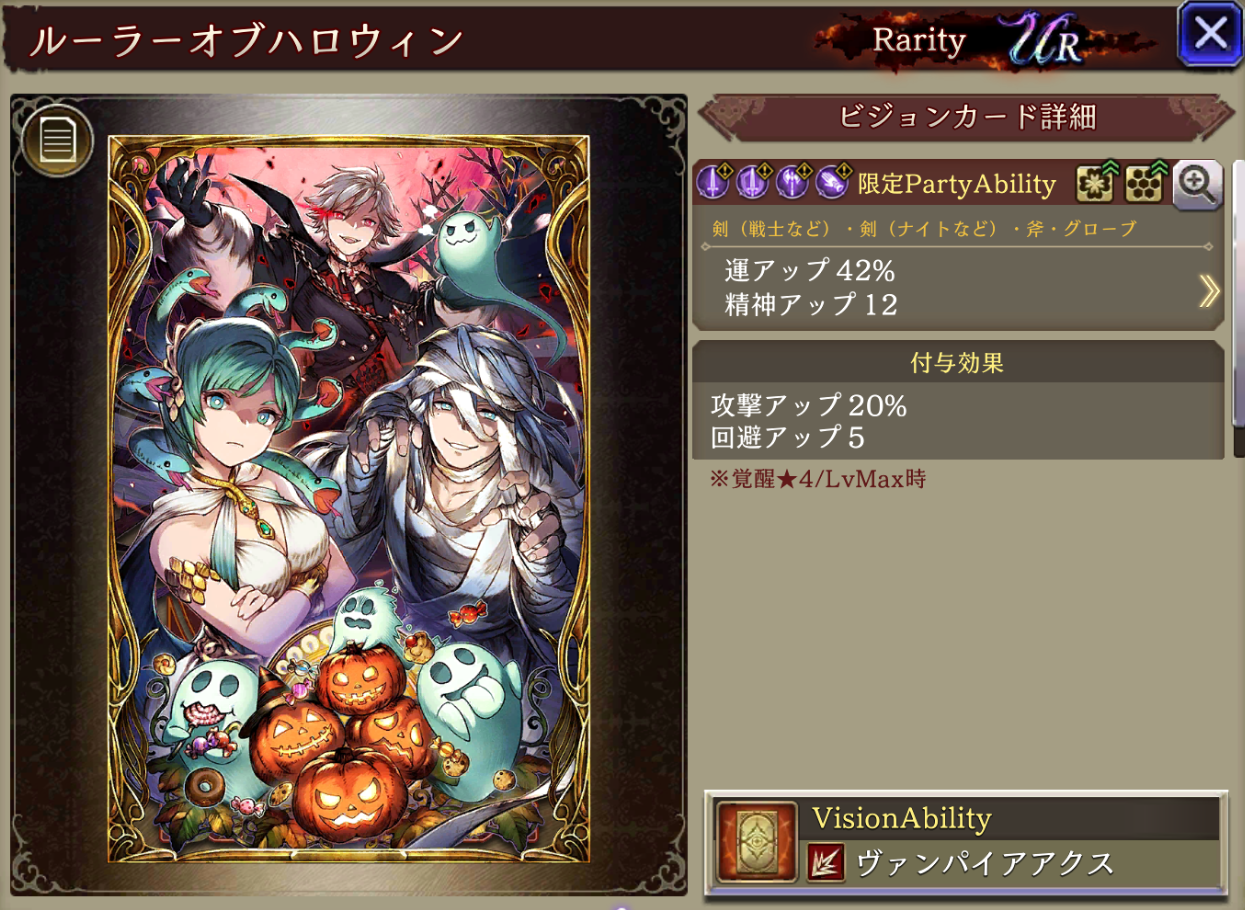 ![]() | ルシオ(ハロウィン) | 278 | UR | 70 | 土 | 斧 |