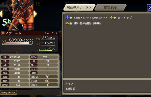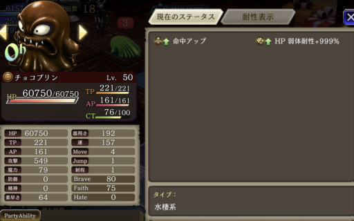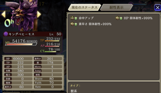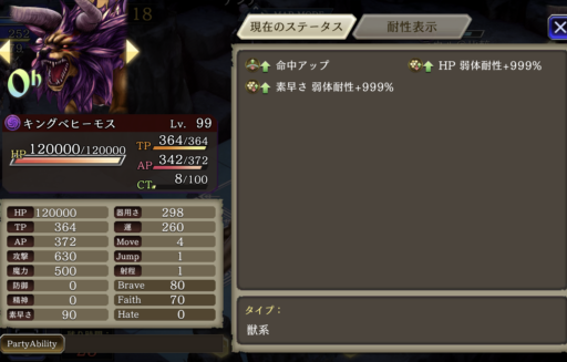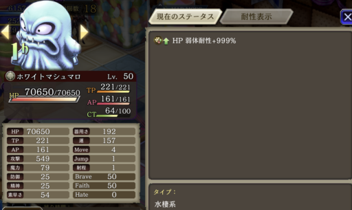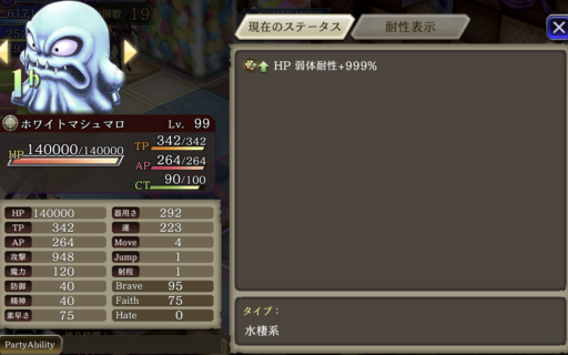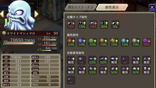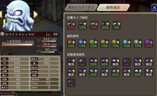 睡眠攻撃があるため、「手乗りホワイトマシュマロ」で耐性を25盛っています
